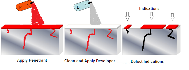 در این روش، یک مایع نافذ با خاصیت رنگی یا فلورسانس بالا بر سطح قطعه اعمال می‌شود. این مایع به درون ترک‌ها و ناپیوستگی‌های سطحی نفوذ کرده و پس از مدتی تمیزکاری، با استفاده از آشکارساز (Developer) بیرون کشیده می‌شود تا محل عیب به وضوح دیده شود.